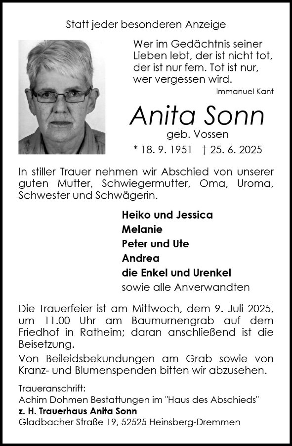 Lesen Sie hier die Anzeigen und Trauerpost!