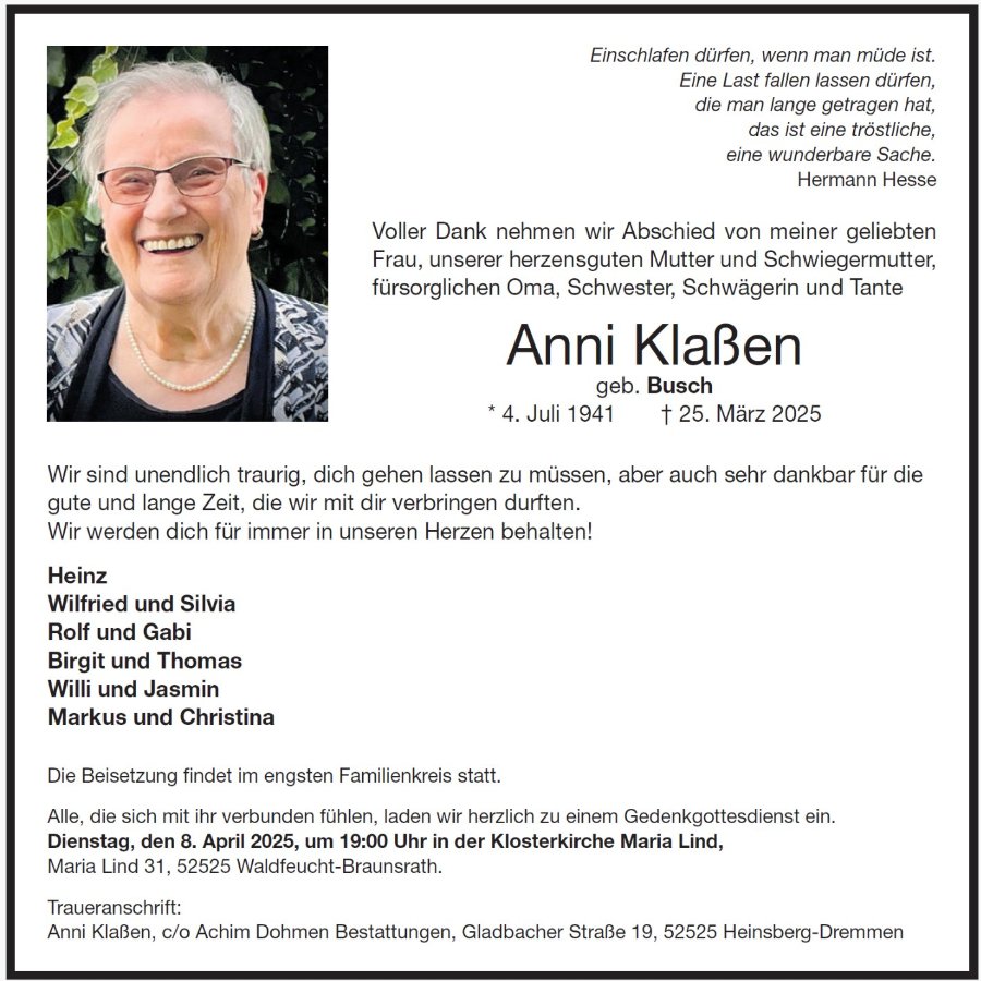 Anni Klaßengestorben am 25. März 2025