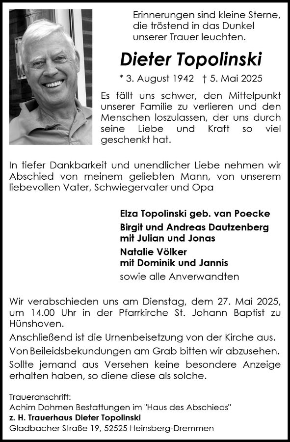 Sprechen Sie im Kondolenzbuch den Hinterbliebenen Ihr Beileid aus und teilen Sie persönliche Gedanken und Erinnerungen mit anderen.