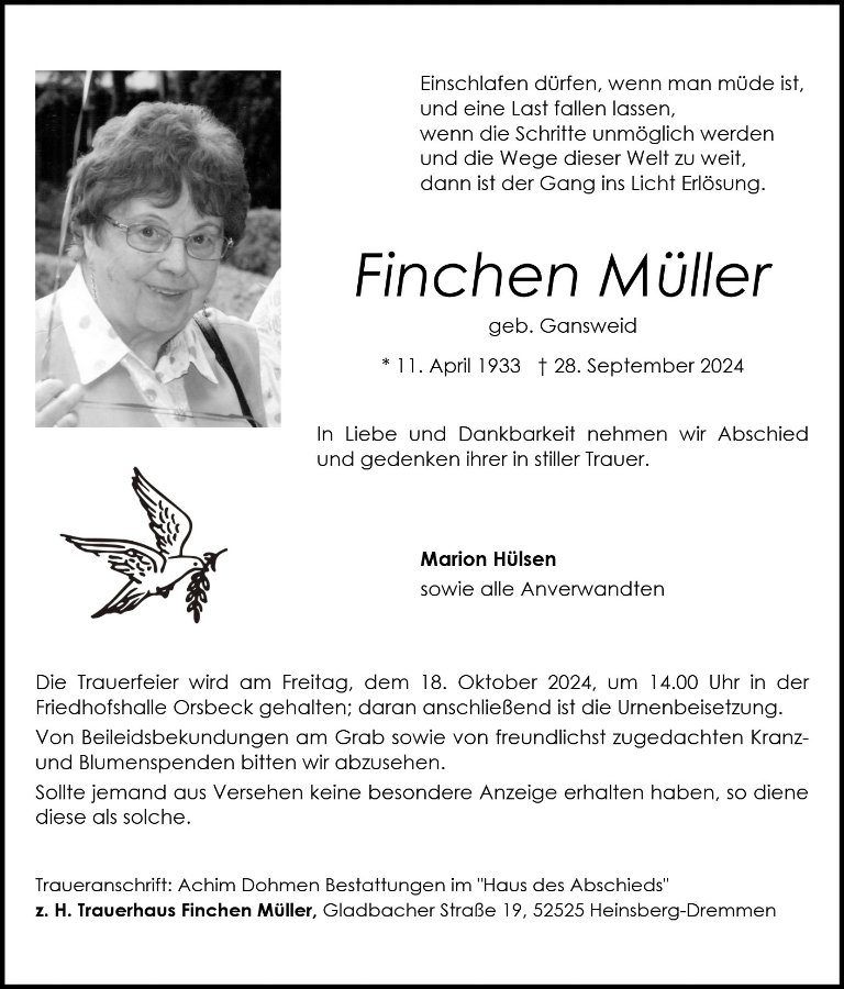 Finchen Müllergestorben am 28. September 2024