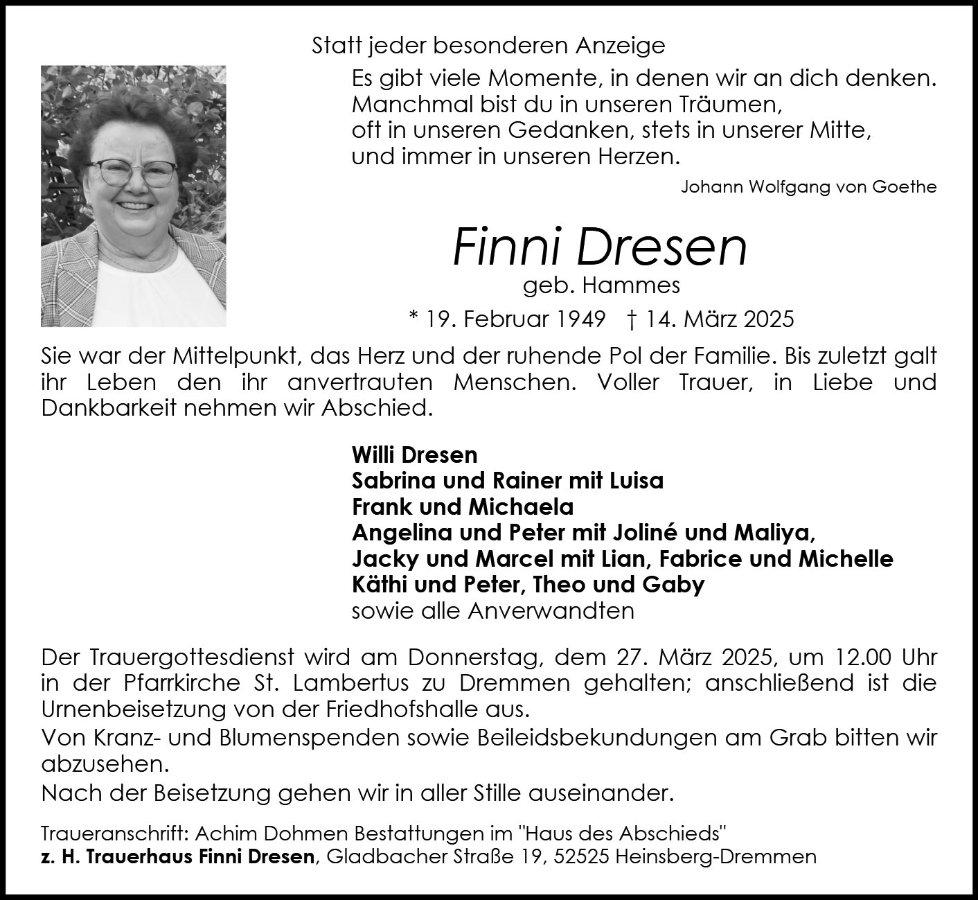 gestorben am 14. März 2025 in Heinsberg-Dremmen