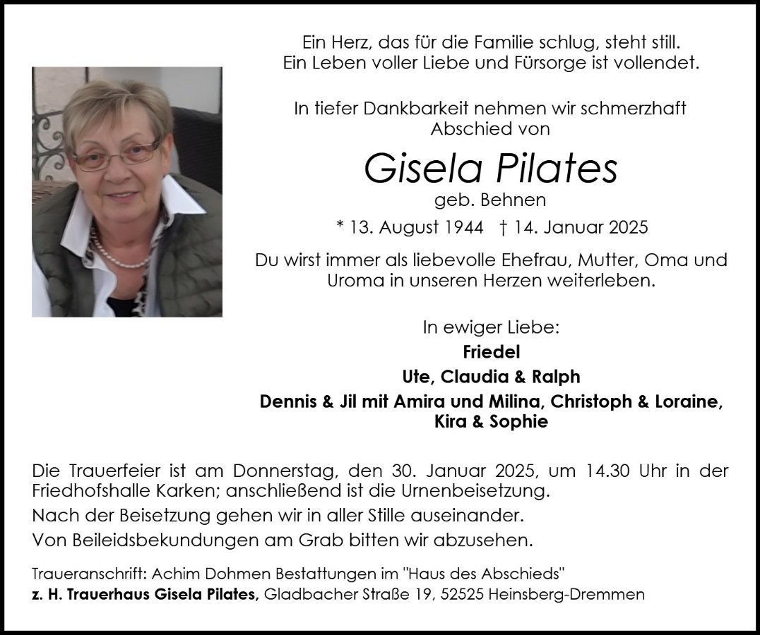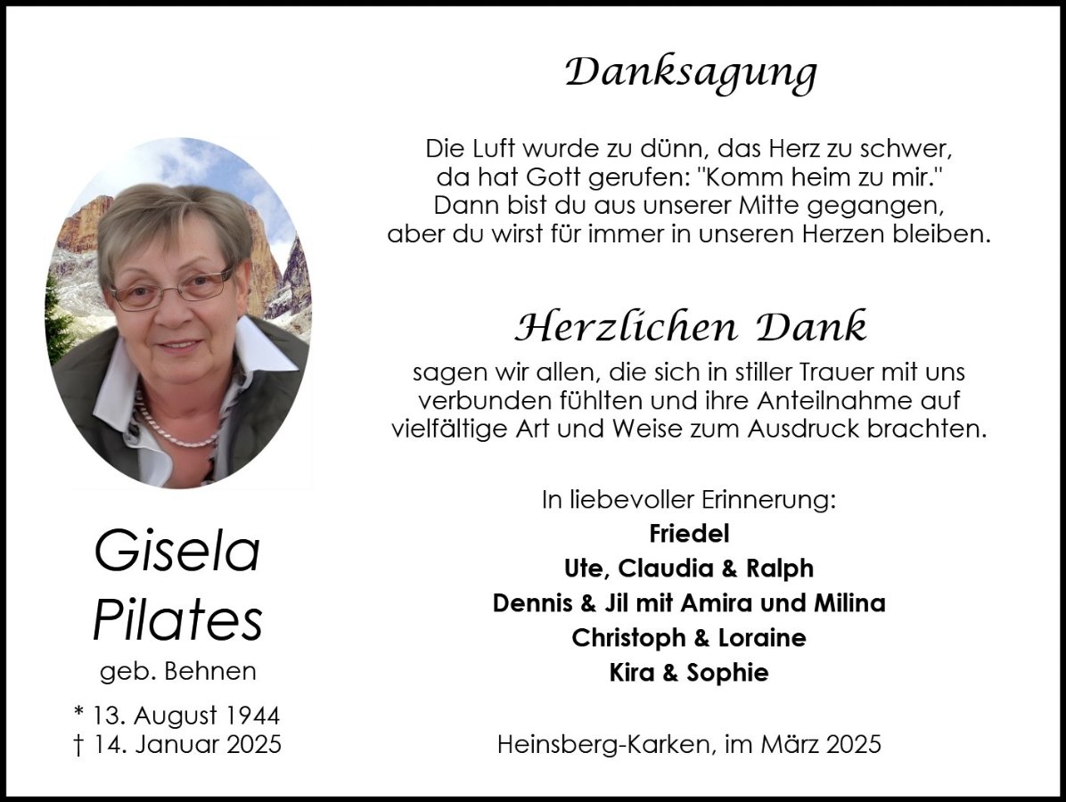 Ich wünsche Euch allen viel Kraft und denkt immer an die schönen Stunden mit Gisela zurück.