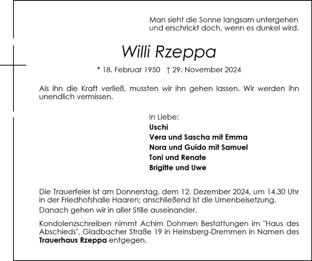 gestorben am 29. November 2024 in Waldfeucht-Brüggelchen