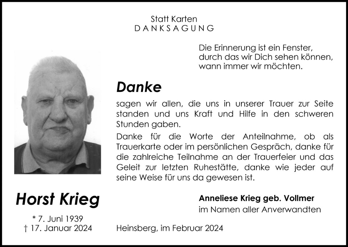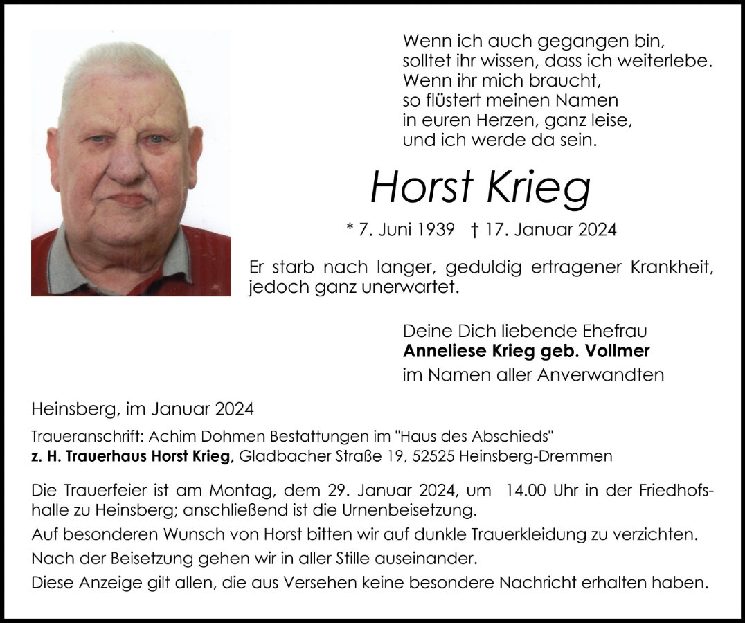 Zum Tod von Herr Horst Krieg mein Herzliches Beileid.