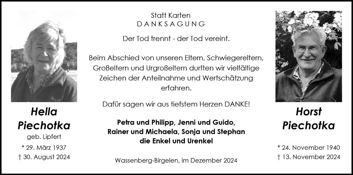 wir wünschen Ihnen von Herzen viel Kraft, dass Sie Menschen um sich haben, die Ihnen in dieser schweren Zeit beistehen und Halt geben. Zusätzlich können Sie auf dieser Gedenkseite Erinnerungen teilen und so das Andenken gemeinsam wachhalten.