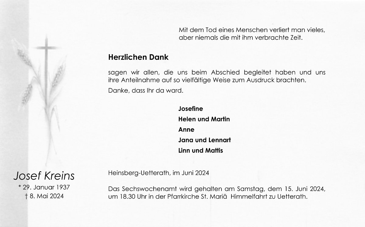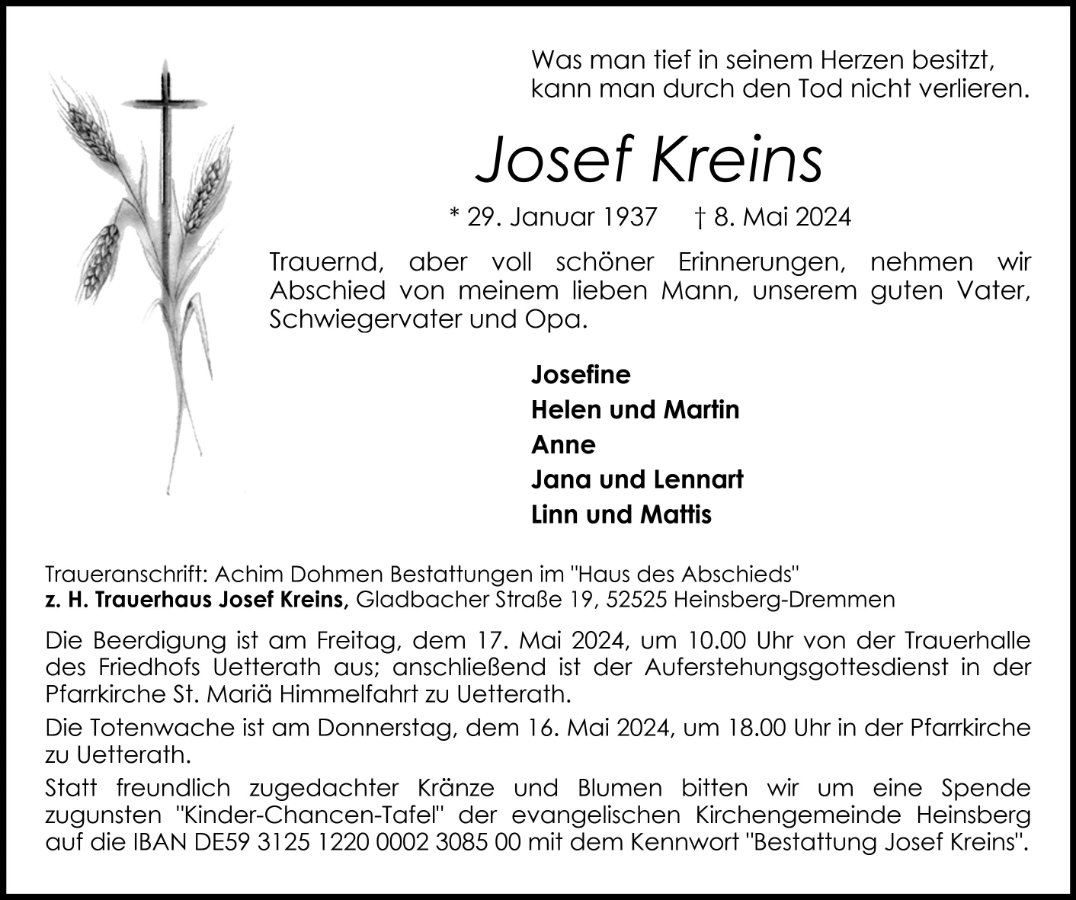 gestorben am 8. Mai 2024 in Heinsberg-Uetterath