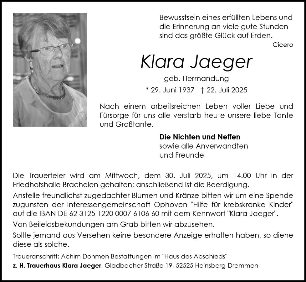 Klara Jaegergestorben am 22. Juli 2025
