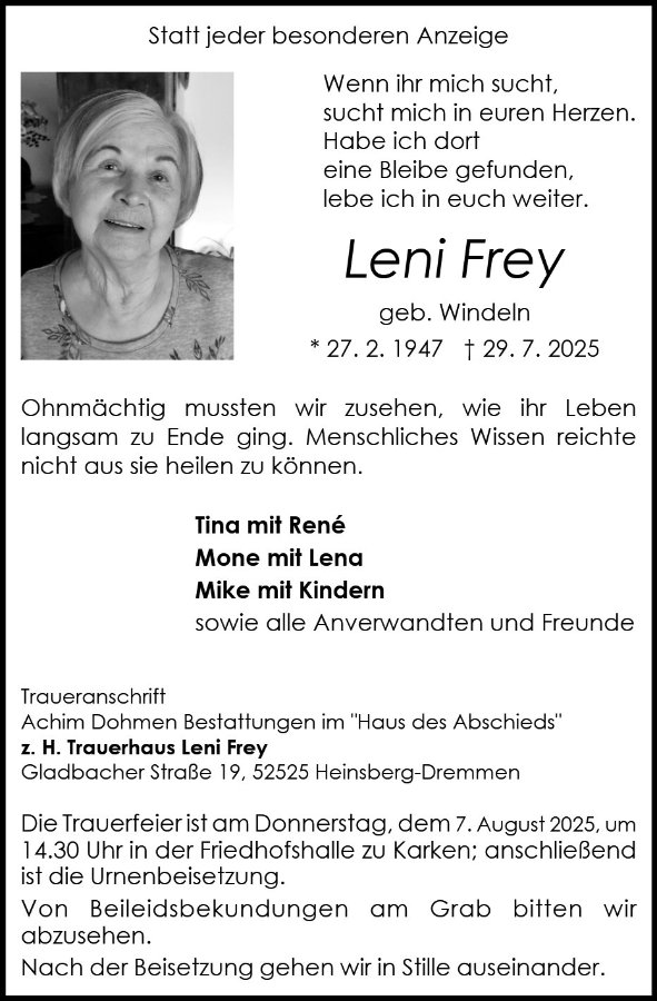 Nun ist sie ihrem geliebten Detlef gefolgt. Der Gedanke, dass die beiden jetzt wieder vereint sind, tröstet ein wenig – und doch bleibt ein großer Schmerz.