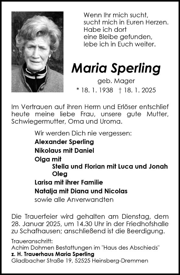 gestorben am 18. Januar 2025 in Heinsberg-Schafhausen