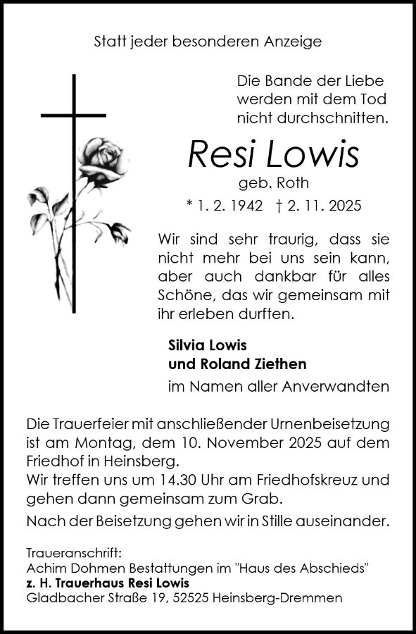 Resi Lowisgestorben am 2. November 2025