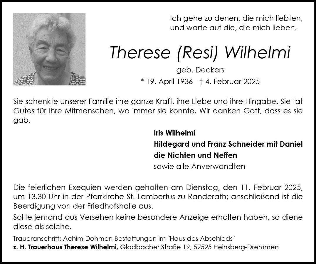 gestorben am 4. Februar 2025 in Heinsberg-Lieck